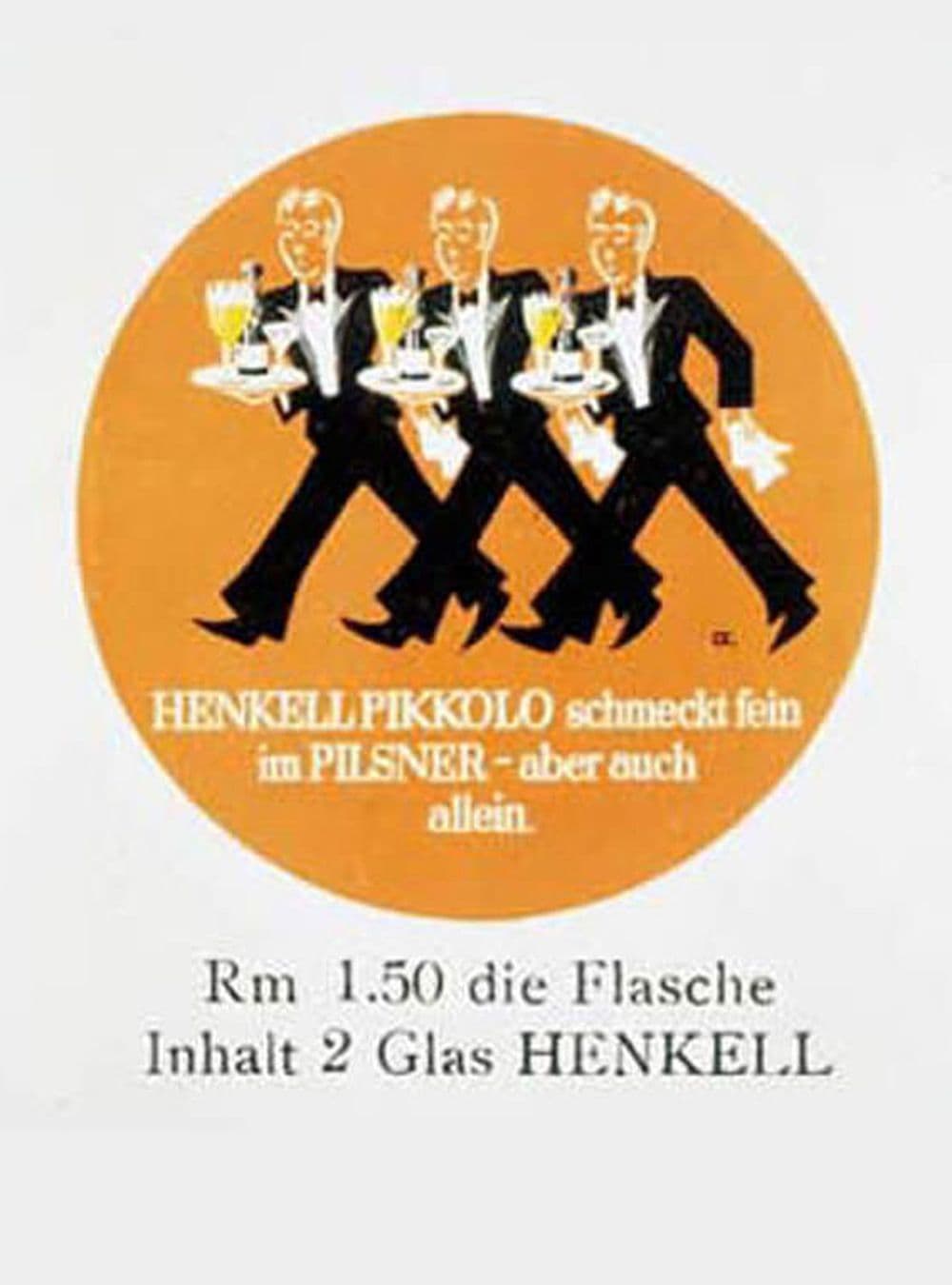 Piccolo – der fleißige kleine Kellner war in den 30er und 40er Jahren des vorigen Jahrhunderts eine der dominierenden Werbefiguren für Henkell Trocken. Der kleine Sympathie-Träger, von Fred Overbeck entworfen, wurde zum Namensgeber für die 0,2-l-Flasche, den Henkell Trocken Piccolo.