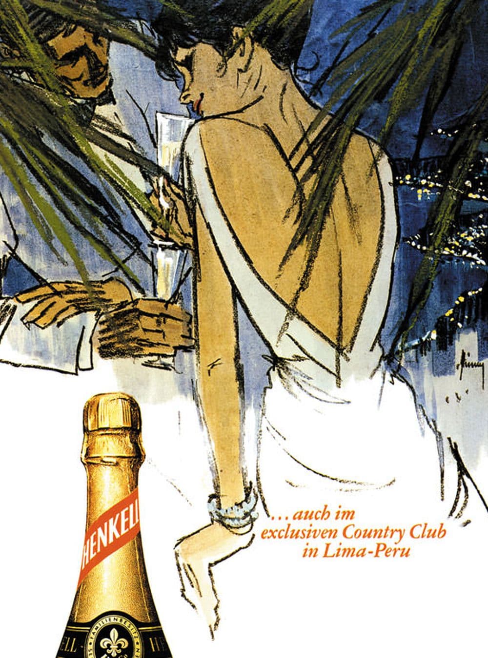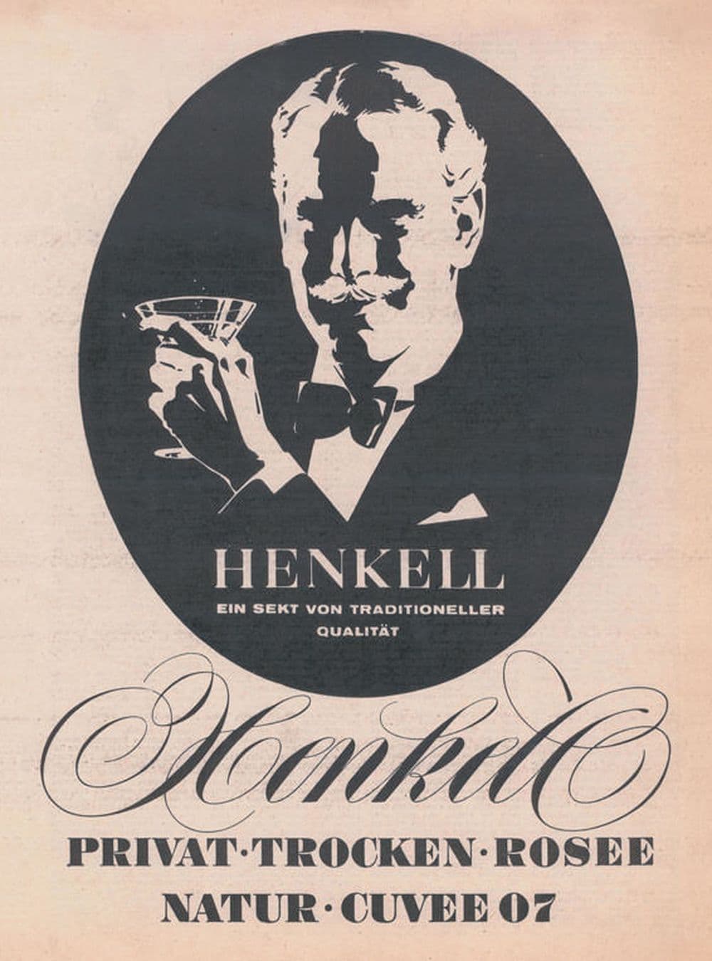 Der „Kenner“, eine Werbefigur, die man auch als Vorläufer des Schwarzen Herren bezeichnen könnte, präsentiert in vornehmer Zurückhaltung Henkell Trocken. Die Illustration wurde von Knut Hansen angefertigt, der als Plakatmaler zahlreiche Auszeichnungen erhielt.