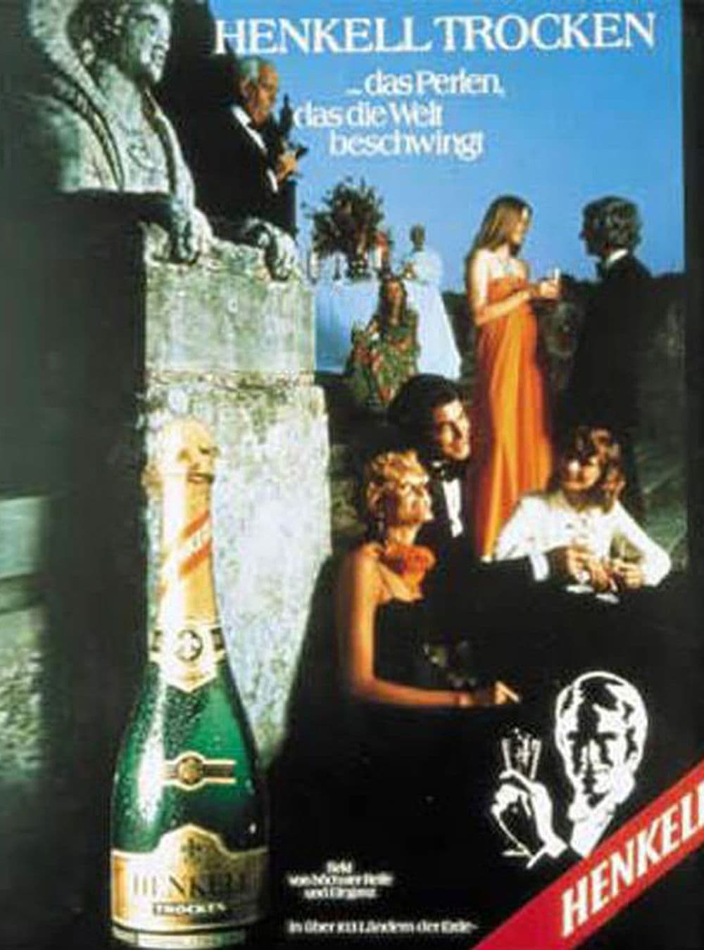 Mit dem verstärkten Einsatz der Fotografie wird die Werbewelt lebendiger. Im Mittelpunkt der Henkell Werbung steht eine elegant-sportive Lifestyle-Welt, in der noch ein Anflug von Flower-Power spürbar ist. Sichtlich moderner: der Schwarze Herr.